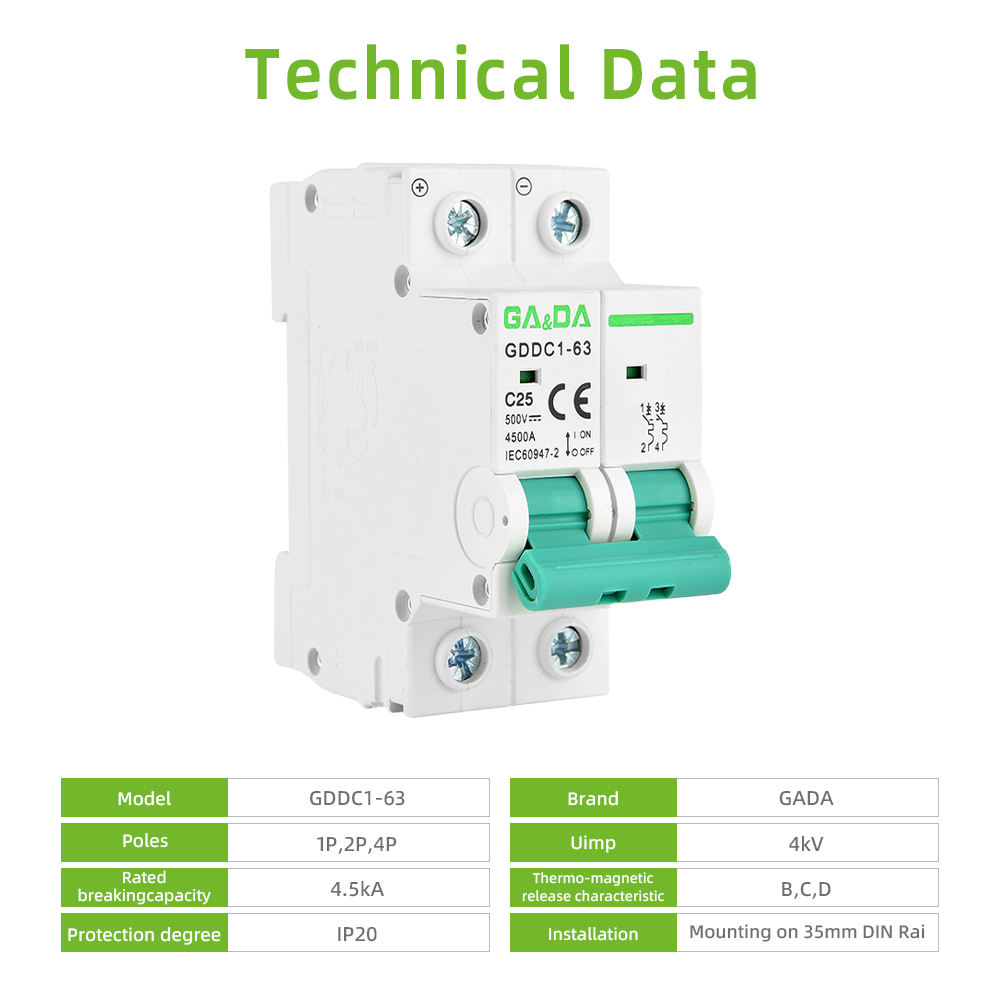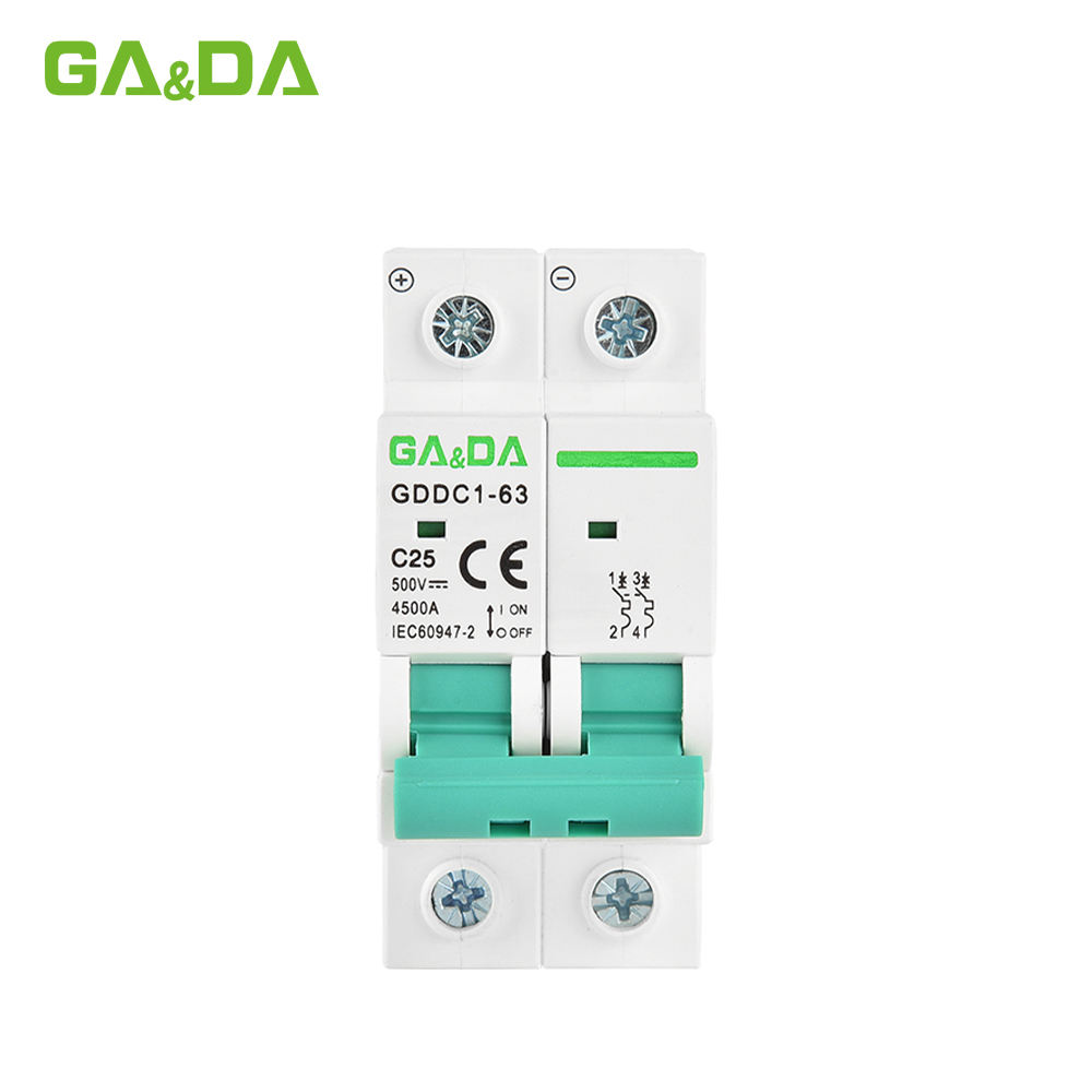 CE GDDC1-63 16 to 63Amp 500VDC 2 Poles 4.5kA Miniature Circuit Breaker Overload Protector DC MCB